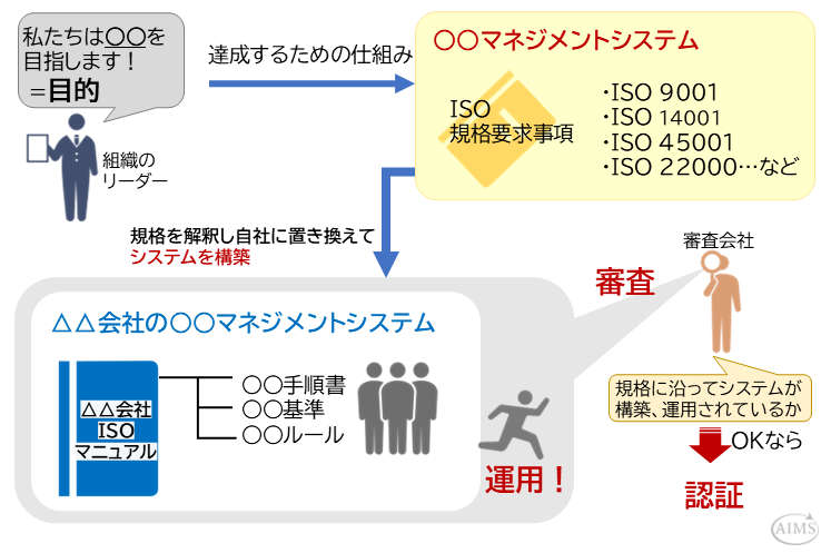 では、ISO規格に沿って組織のシステムを作ることがISO?