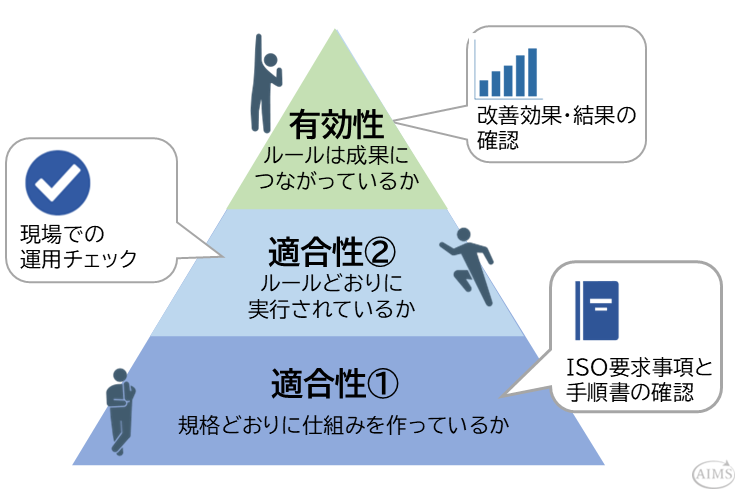 適合性については、外部審査でも内部監査でもチェックしますが、内部監査ではもう一つの見るべきポイントがあります。
